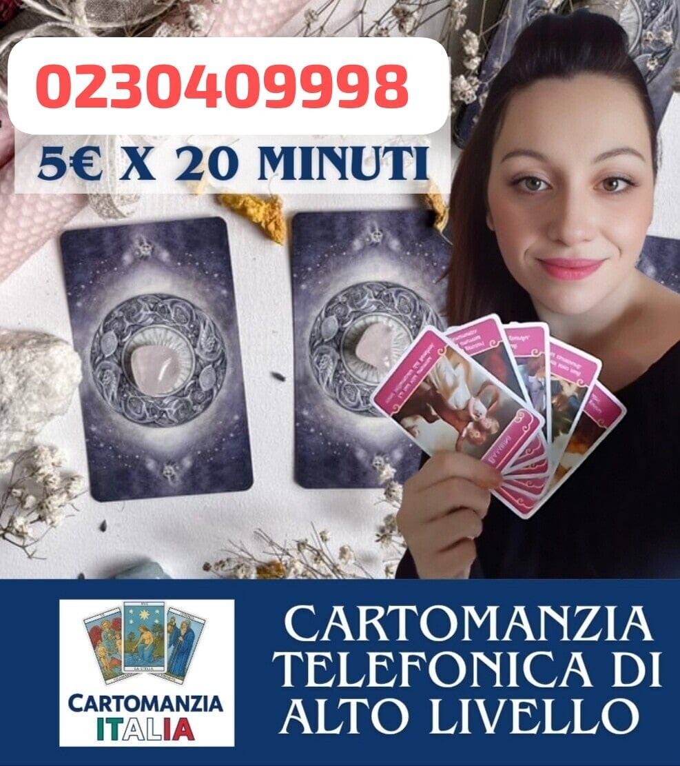 Vuoi riconquistare la persona amata? Soffri per un amore incerto? Sai che puoi conoscere il tuo destino comodamente da casa tua? Come? Con una semplice telefonata! Ti risponderanno le migliori esperte d'italia in astrologia e cartomanzia al telefono. Ti daranno consigli e risposte per aiutarti a risolvere tutti i tuoi problemi di: Amore, Benessere, Denaro e Fortuna. Non perdere tempo perchè se conosci ora il tuo futuro, potrai cambiare positivamente la tua vita.
